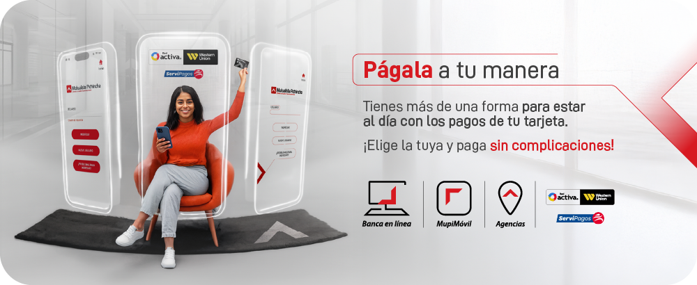 Paga tu Tarjeta de Crédito sin complicaciones, desde tu entidad financiera preferida, Western Union o Servipagos.