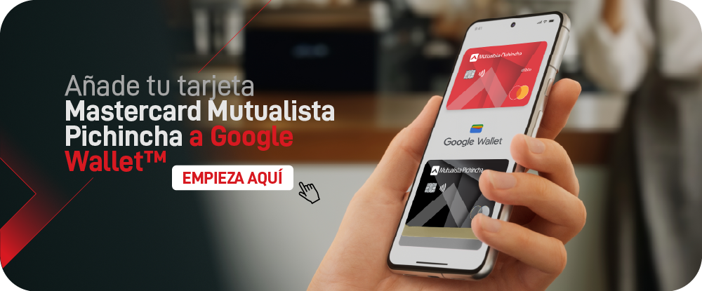 Es la funcionalidad de Google Wallet™ que te permite pagar fácilmente con tu celular en cualquier comercio físico, online o desde aplicaciones. Agrega tu tarjeta Mastercard Mutualista Pichincha a tu billetera digital, simplifica su uso y compra desde tu celular de manera segura.
